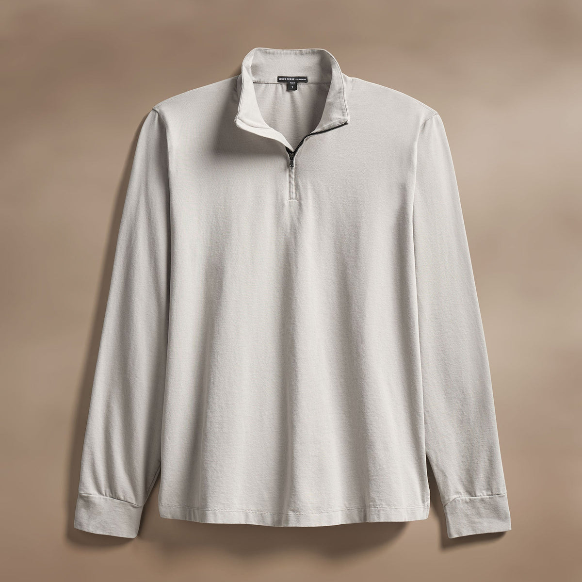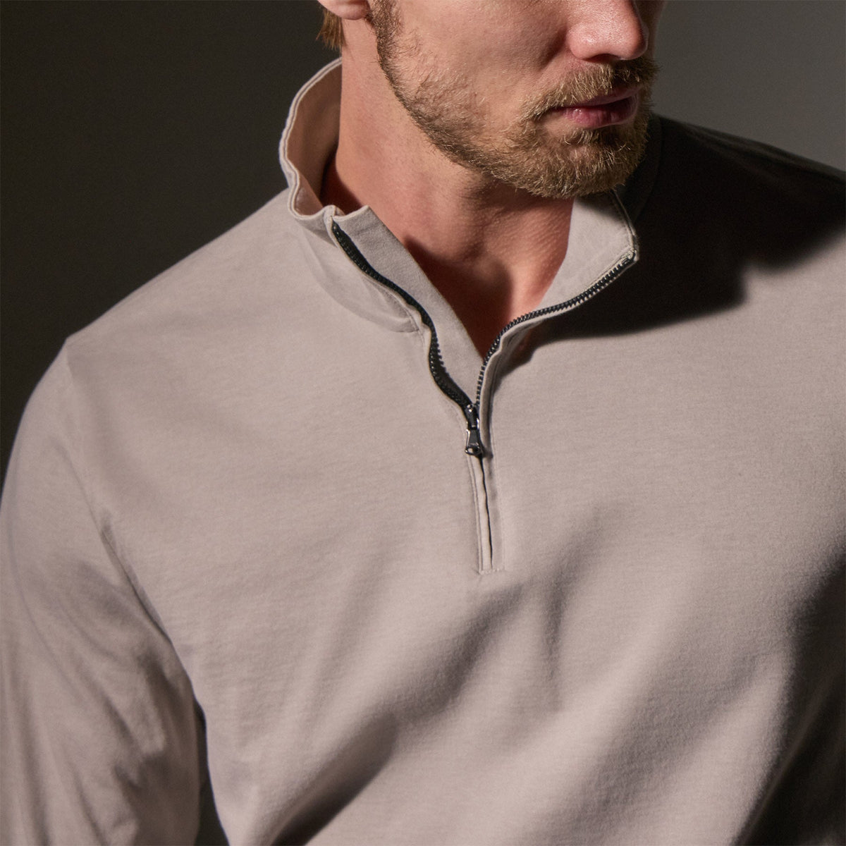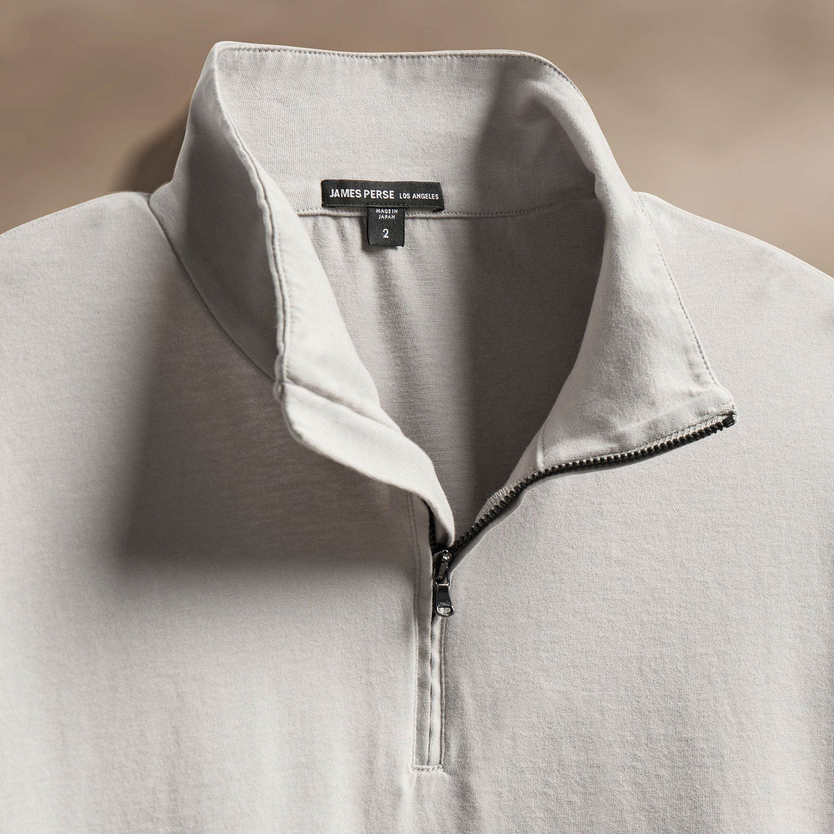 Our Luxe Organic Jersey Half Zip Funnel Neck is made with luxe Japanese organic cotton jersey. It is knitted using organic cotton providing soft, yet lofty hand feel. Style details include funnel collar with zipper, sleeve cuffs, side splits at hem. Classic fit.