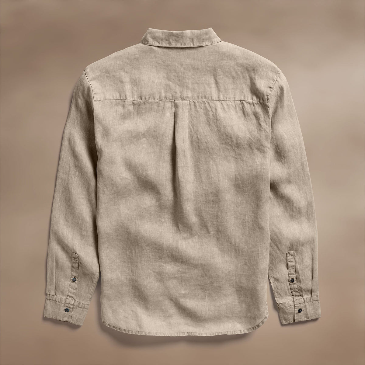 Classic Italian lightweight linen, breathable and soft. Button front closure with front chest pocket. Full length sleeves with placket at cuffs. Back yoke and shirt tail hem.