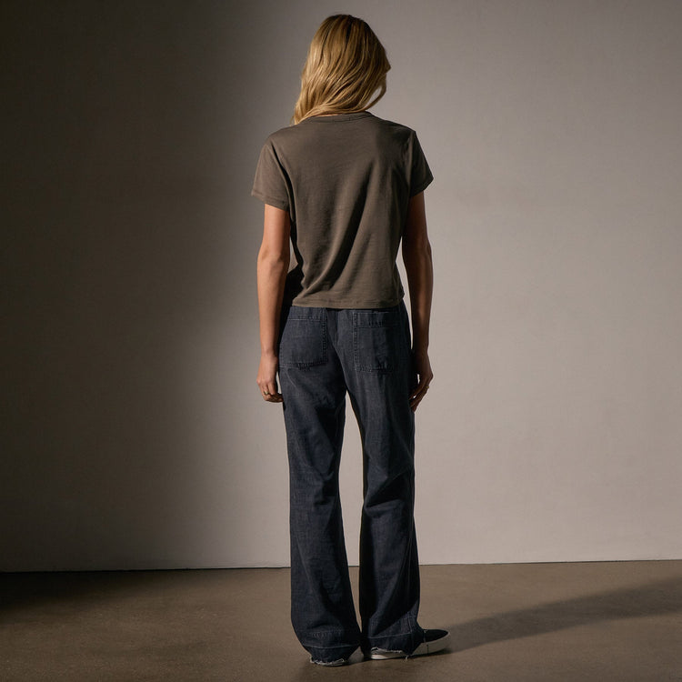 Our Shrunken Crew Neck S/S Tee is made in a super soft brushed Lotus jersey from Japan. Style details include binded crew neckline and clean finish hems. Slightly cropped.
