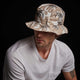 Our Camo Palm Print Bucket Hat is made from 100% cotton and features a built in sweatband. Offered in two sizes. Fit runs small, sizing up is recommend.