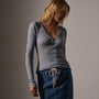 Our Cotton Cashmere Rib Henley is a super fine, light rib Japanese fabric. The fabric is lightweight yet has a luxuriously soft hand. Style details include deep V neckline, 2 button closer, raw edge at bottom opening & sleeve. Fitted