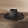 This Cove Hat has a fedora shaped crown with slight pinches, leather cord trim, and made of Panama straw.