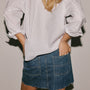 Made of Italian denim and features our signature elasticated waistband with drawcord and belt loops. Front patch pockets and two back pockets, raw edge hem