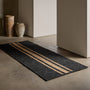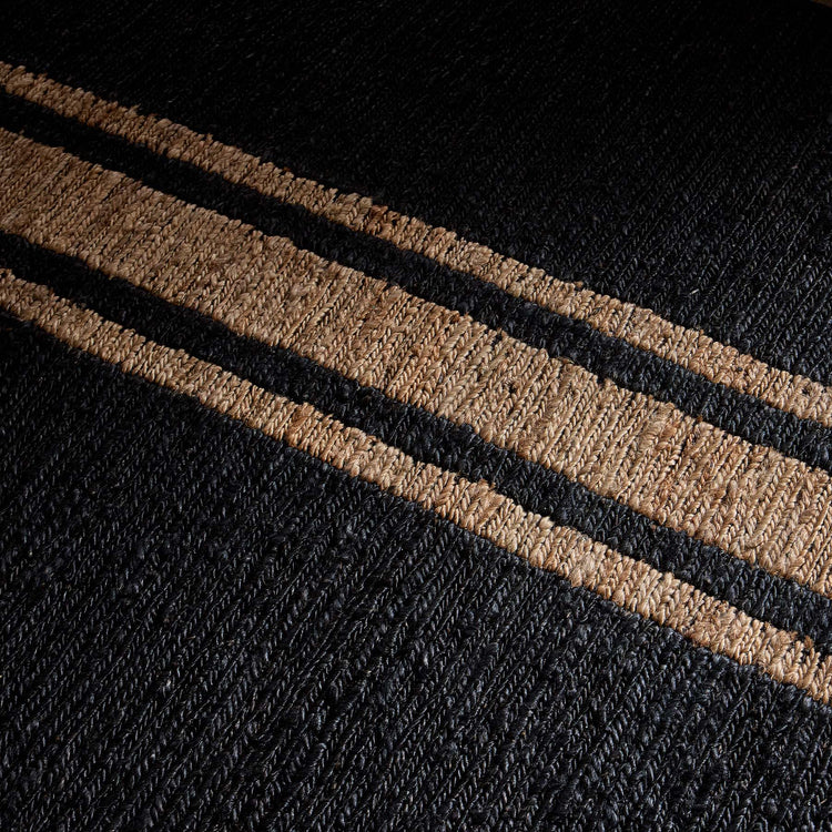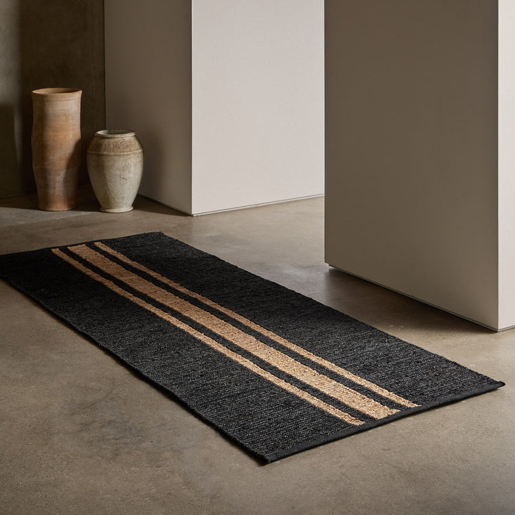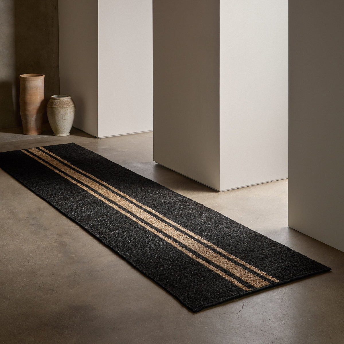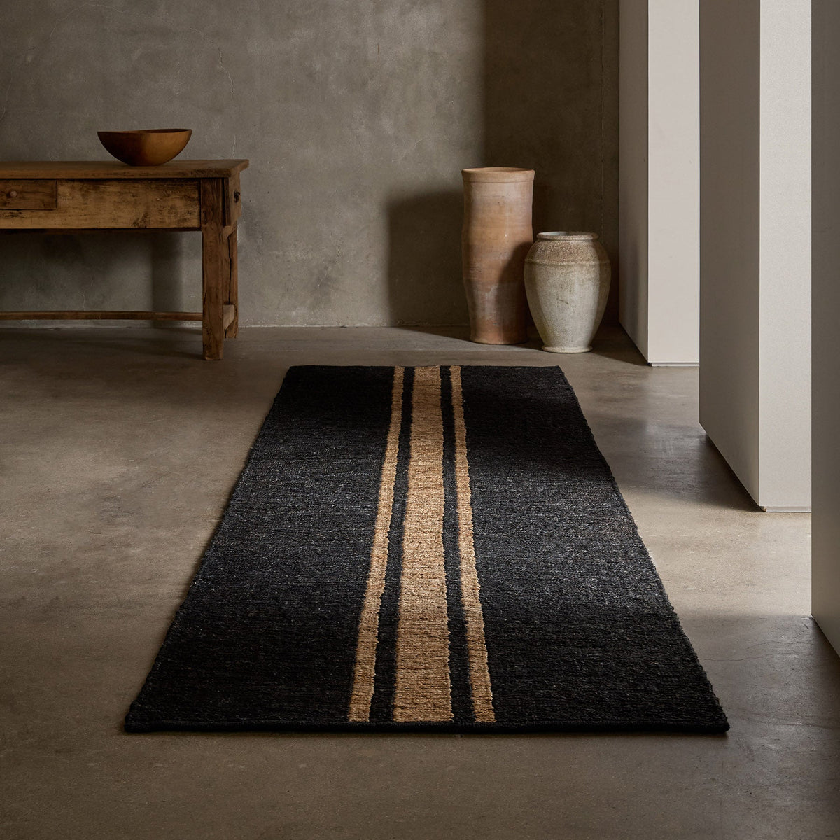 Our 100% jute runners are woven from natural plant fibers and are soft, yet durable. Available in natural or hand-dyed charcoal solid, or with our signature stripe down the center. We recommend to accent any space, from a hall to a bedroom, to add warmth and texture.