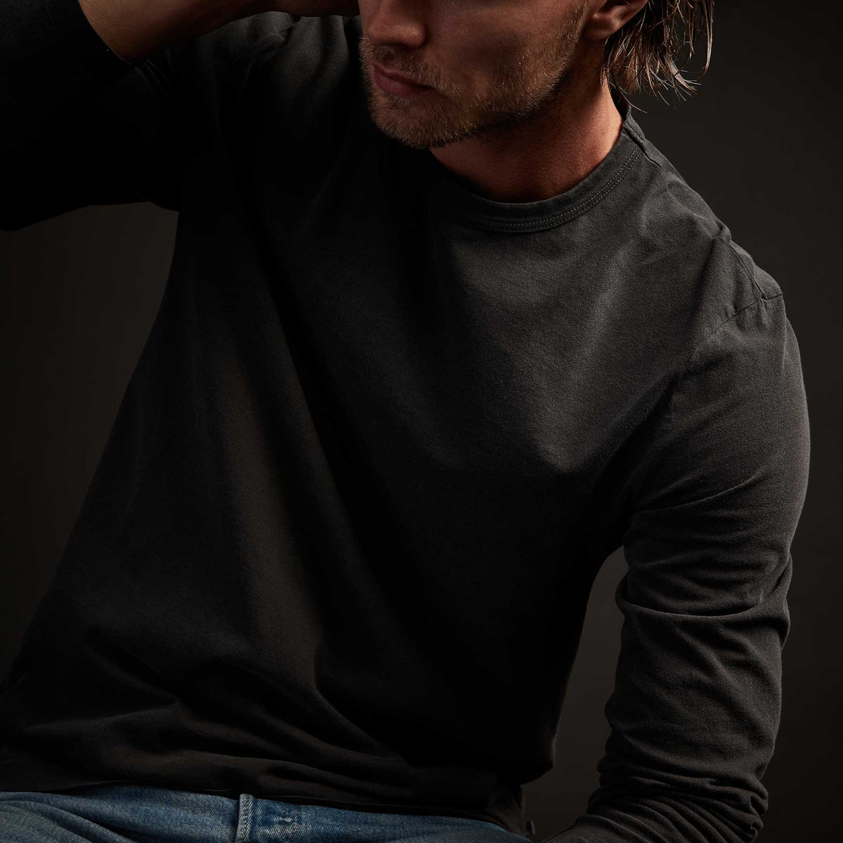 Our Long Sleeve Crew is made in 100% cotton. This jersey in an extremely soft knit made by specially treating the cotton fibers before they are spun into yarn. Style details include a binded neck, full length sleeves and clean finished hems. Classic fit. Garment dyed with extra softeners for a soft lived in feel.