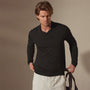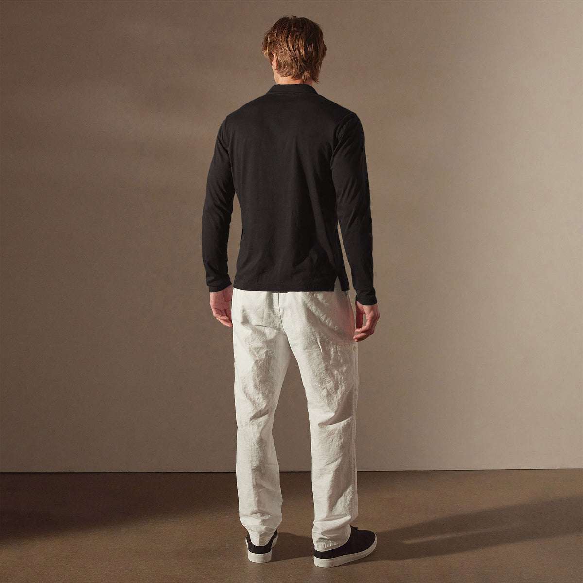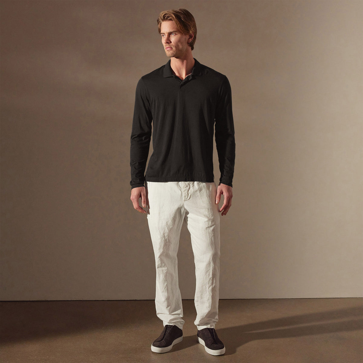 Our Elevated Lotus Jersey is made with unique luxe jersey from Japan. This fabric is incredibly smooth and ultra-soft with satin like hand feel. This polished long sleeve polo is a great day to night transition piece. Classic fit.