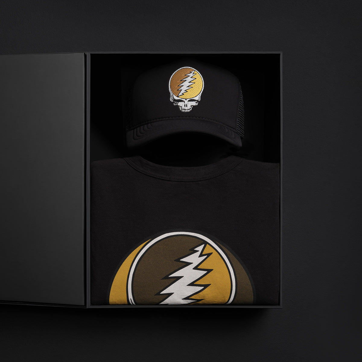 Men's Grateful Dead Short Sleeve Tee & Trucker Hat Set, presented in a custom James Perse box.