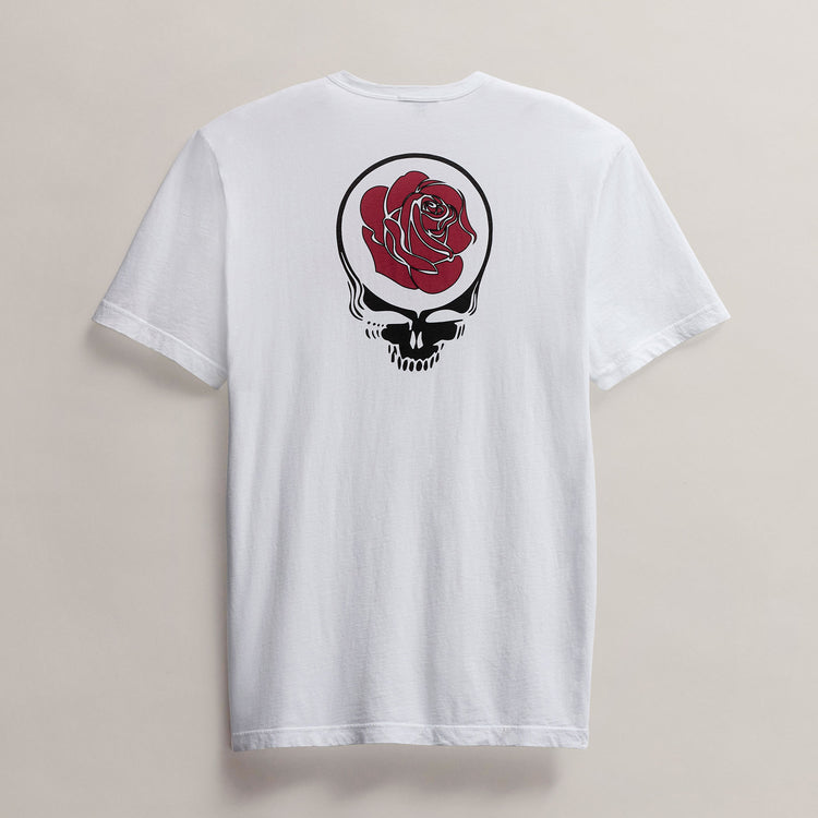 Our Grateful Dead Rose Short Sleeve Tee is made in our 100% cotton signature jersey. Style details include a binded neck, clean finished hems with Grateful Dead Rose on the center back and on the front left chest. Classic fit. Garment dyed with extra softeners for a soft lived in feel.