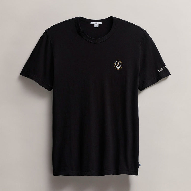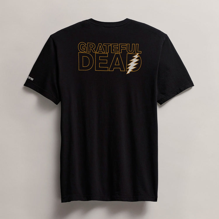 Our Grateful Dead Skull Short Sleeve Tee is made in 100% cotton. Style details include a binded neck, clean finished hems. Graphics on the front left chest, center back, and on the wearer's left sleeve. Classic fit. Garment dyed with extra softeners for a soft lived in feel.