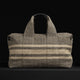 Our modern and sleek duffle bag is made with linen from Belgium. Self fabric reinforced stitched straps with leather top handle. Interior zip mesh pocket. Side slit pockets. Removable grosgrain adjustable shoulder strap. Smooth leather bottom.