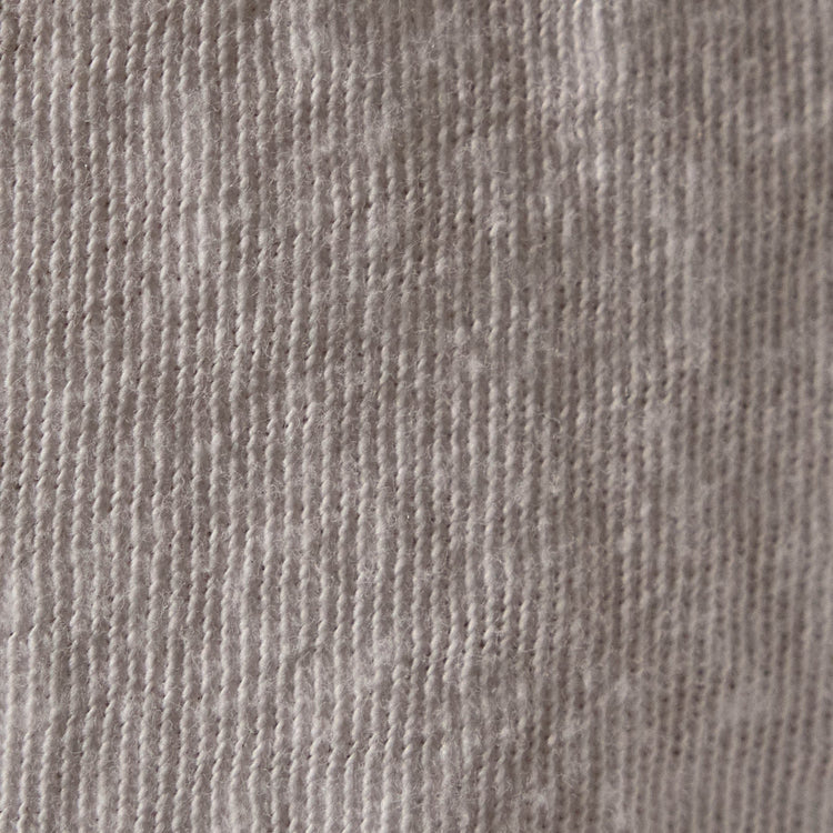 Fabric is soft with a lofty gauze effect, natural slub with high's and low's. Raw edge at bottom opening, binding at neck and arm opening