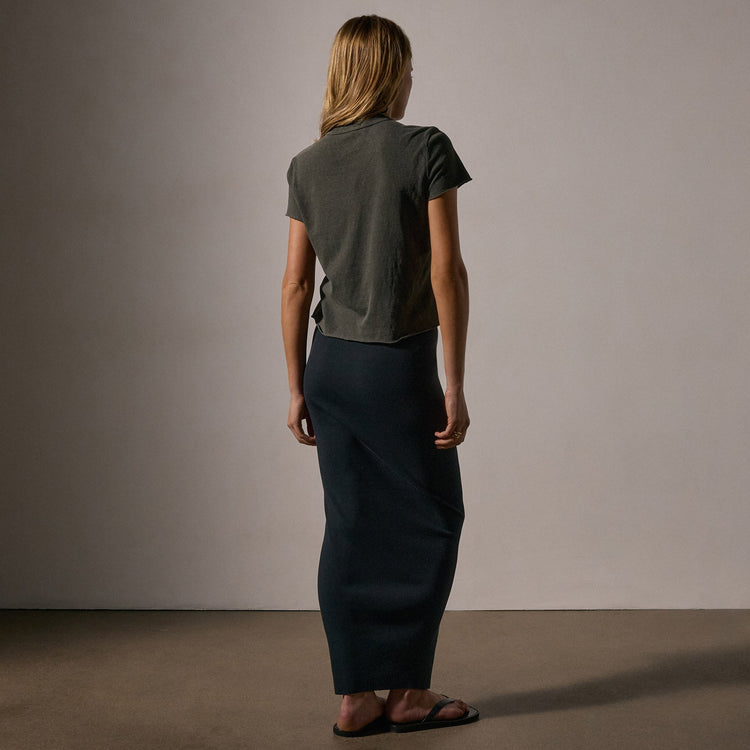 Made in Japanese jersey. Fabric is soft with a lofty gauze effect, natural slub with high's and low's. Raw edge bottom opening, binded crew neck