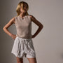 Our Open Knit Cashmere Vest is made using a soft, airy, luxurious cashmere yarn. Style details include ribbed neck, arm bands and hem. Fitted