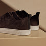 Our Suede Skate Sneaker is made of 100% Italian calf suede leather with modern lace up detail with hidden eyelets, and round waxed cord laces.