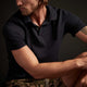 The Sueded Jersey Polo is made from brushed 100% cotton that creates a soft, suede-like handfeel and is garment dyed for a lived-in surface. The self collar and single-button placket establish a clean front, while the twill-tape side slits, stepped hem, and cover-stitched construction give the piece a refined sense of structure.