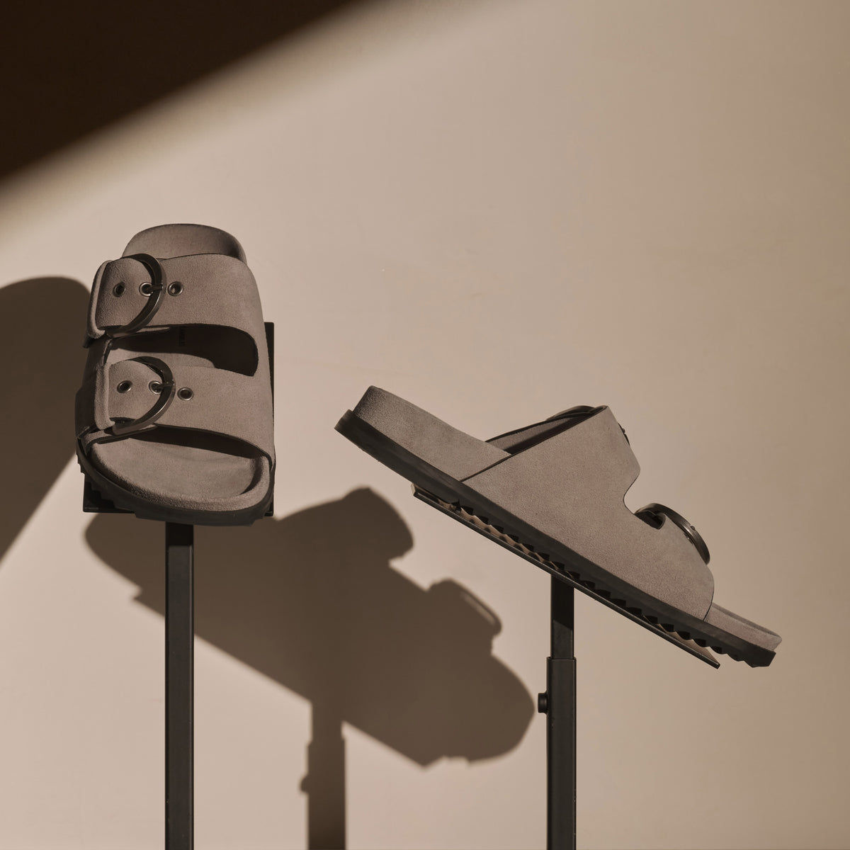 Our Suede Buckle Slide features novelty buckle closures. This sandal is set on a molded supportive footbed for comfort and wrapped in suede.