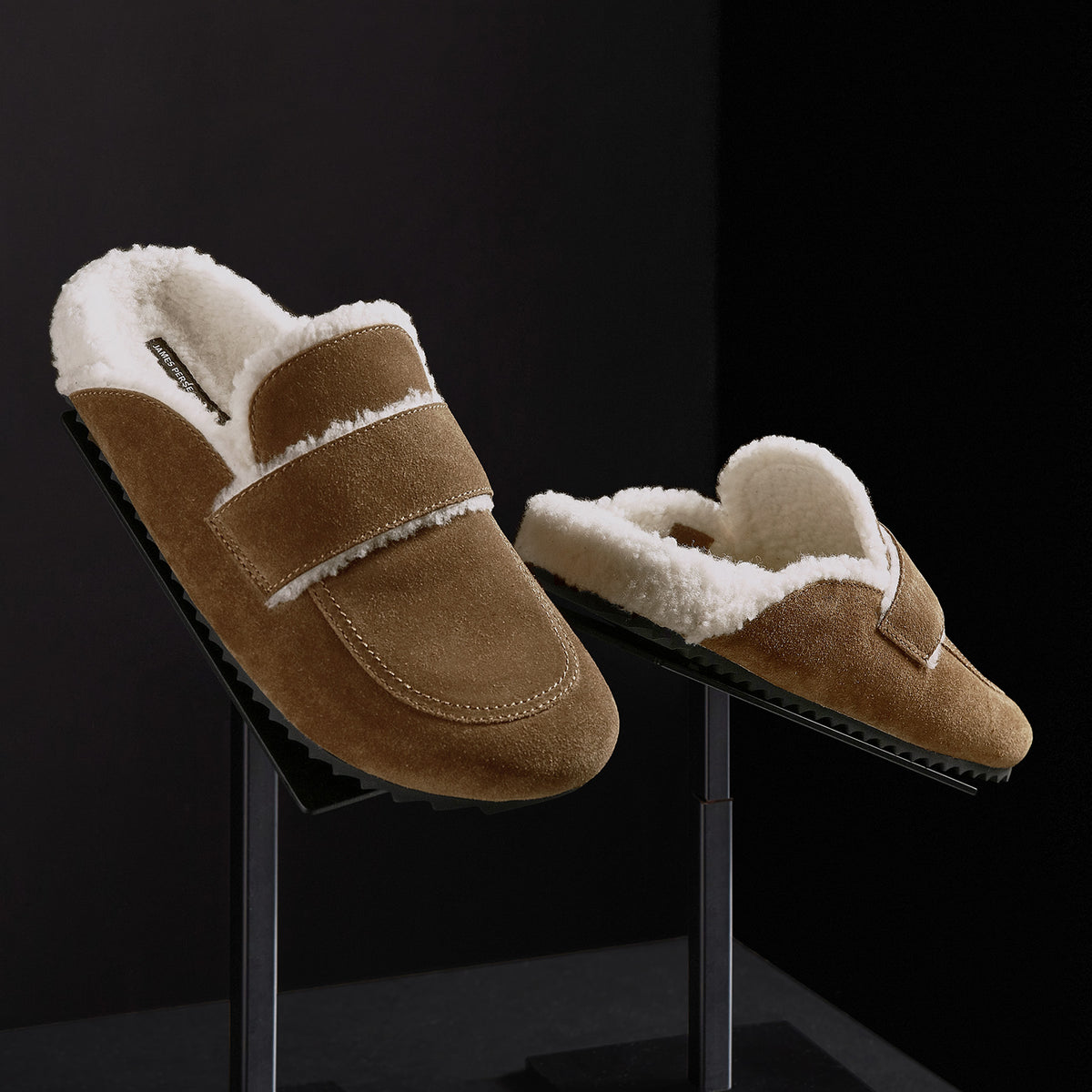 This easy slip on loafer is made from a soft suede and features a top strap detail. This style is lined in faux shearling and is set on a supportive molded cork foot bed.